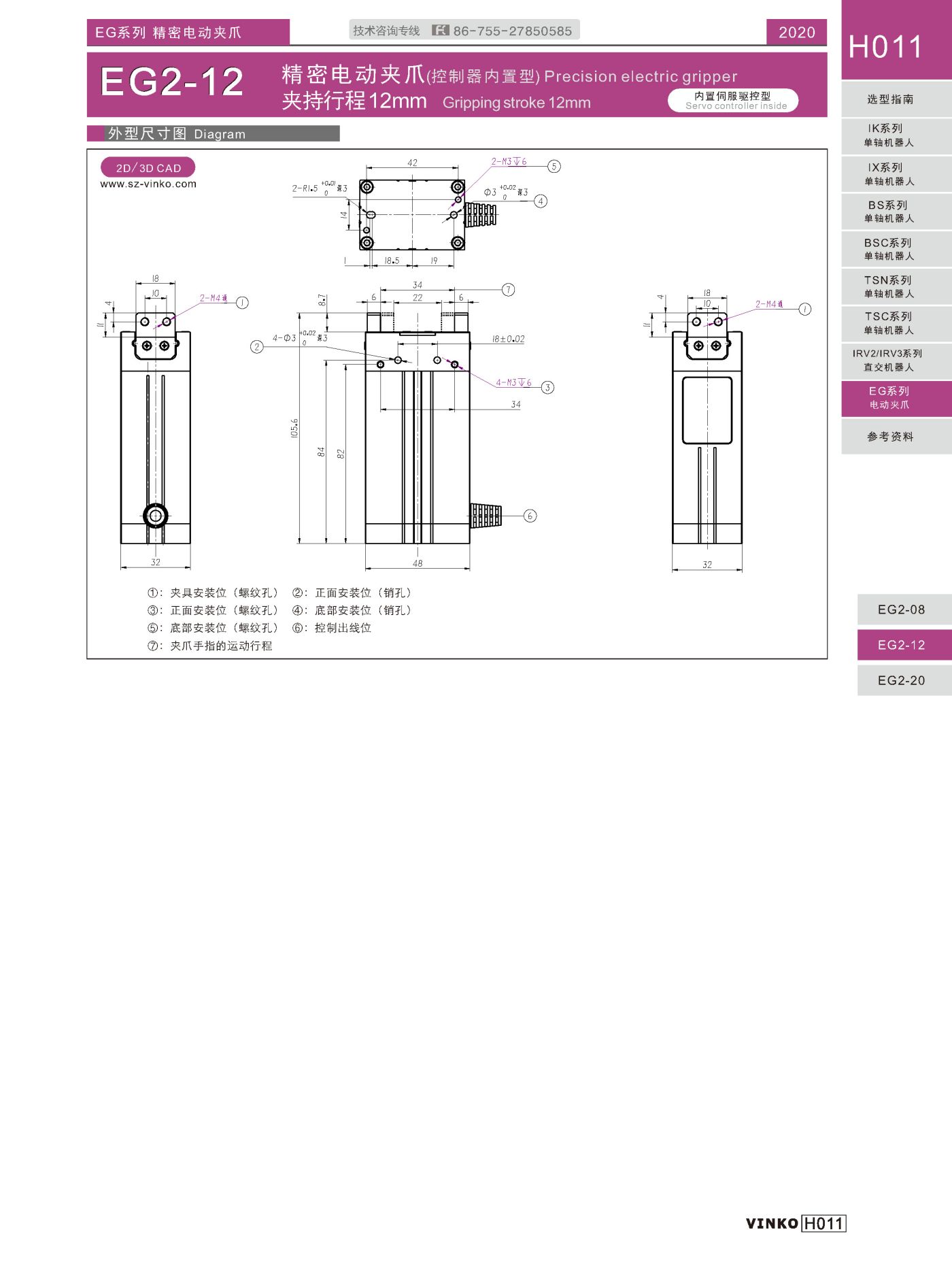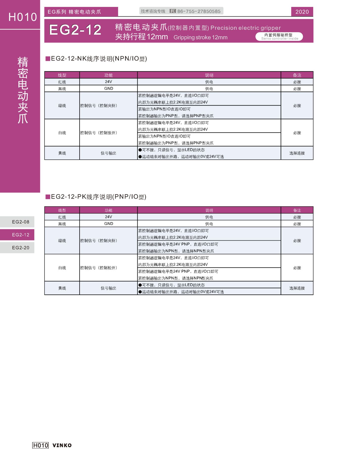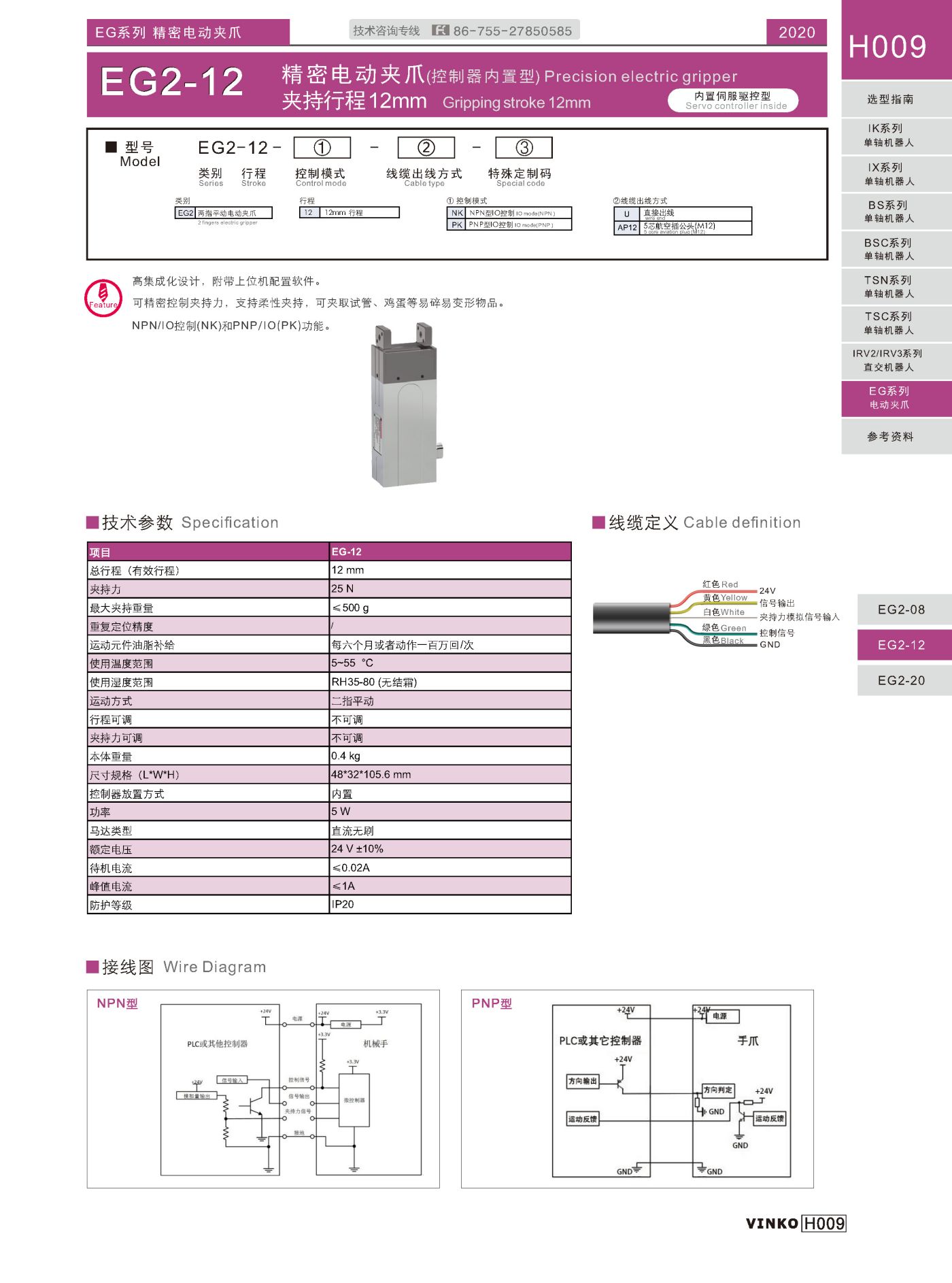 | 产品名称 | EG2控制器内置型电动夹爪 (Controller built-in Electric gripper) |