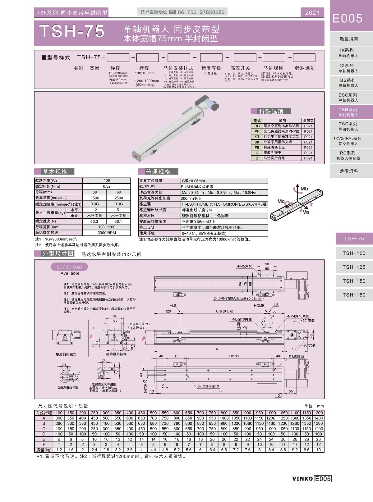 产品名称‎TSH标准型匹敌模组滑台 (Standard Timing belt linear module, General type)